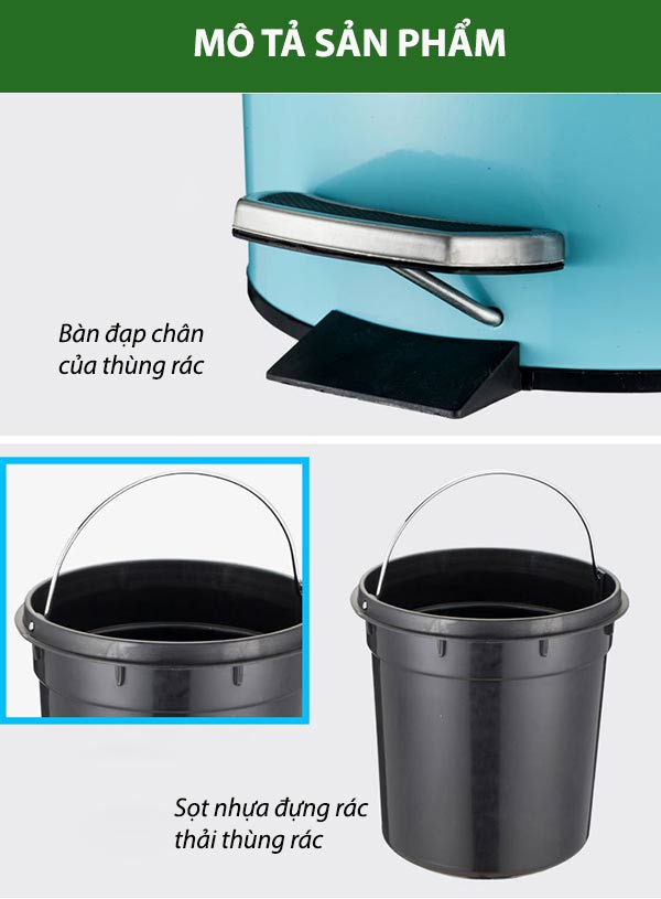 Thông số kỹ thuật thùng rác đạp chân nhiều màu