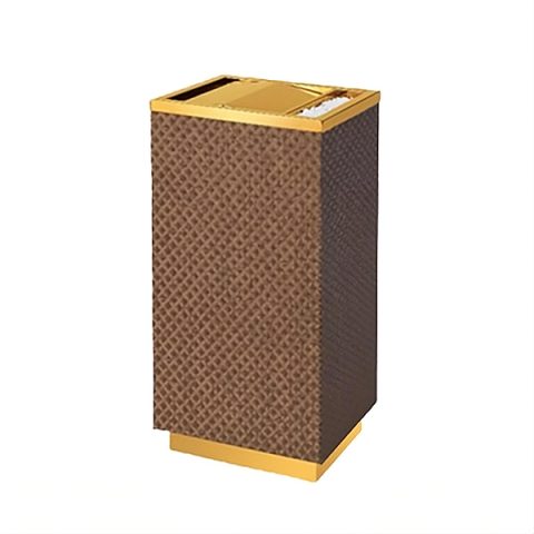 Thùng rác được sản xuất từ inox vàng cao cấp, bên ngoài được bọc giả da vân caro mang đến sự khác biệt so với các mẫu thùng rác thông thường. Nhờ chất liệu inox, sản phẩm có độ bền vượt trội, chống gỉ sét và giữ được độ sáng bóng lâu dài. Lớp bọc vân caro không chỉ tạo điểm nhấn sang trọng mà còn phù hợp với nhiều phong cách nội thất, từ hiện đại đến cổ điển.