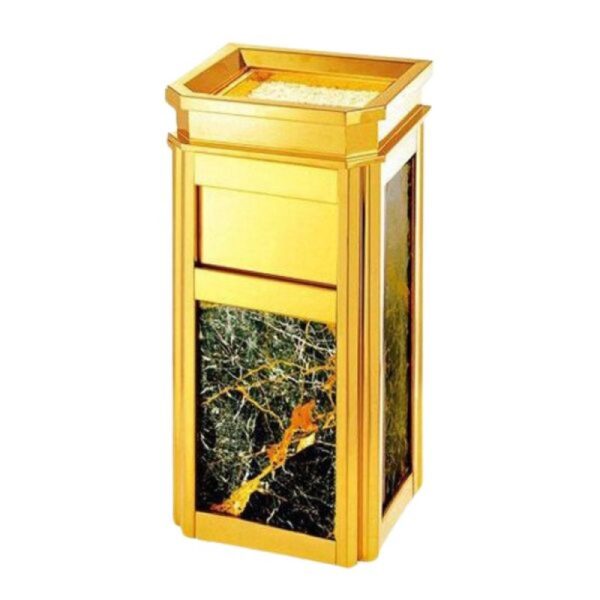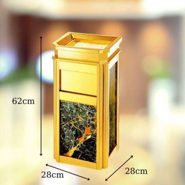 Thùng rác inox mạ vàng giả đá có gạt tàn là một sản phẩm không chỉ đáp ứng nhu cầu chứa rác mà còn mang lại giá trị thẩm mỹ cao cho không gian sống và làm việc. Với kích thước 28 x 28 x 62 cm, sản phẩm này được thiết kế đặc biệt để phù hợp với các không gian sang trọng như khách sạn, nhà hàng, và trung tâm thương mại.